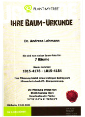 Doch wir denken noch weiter: Wir haben uns entschlossen mit der Initiative PLANT-MY-TREE die Patenschaft für einige Bäume zu übernehmen.